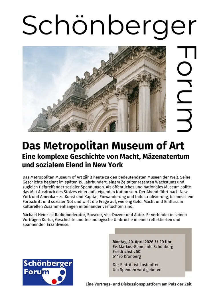 Das Metropolitan Museum of Art (The MET) - Eine komplexe Geschichte von Macht, Mäzenatentum und sozialem Elend in New York, Vortrag von Michael Heinz