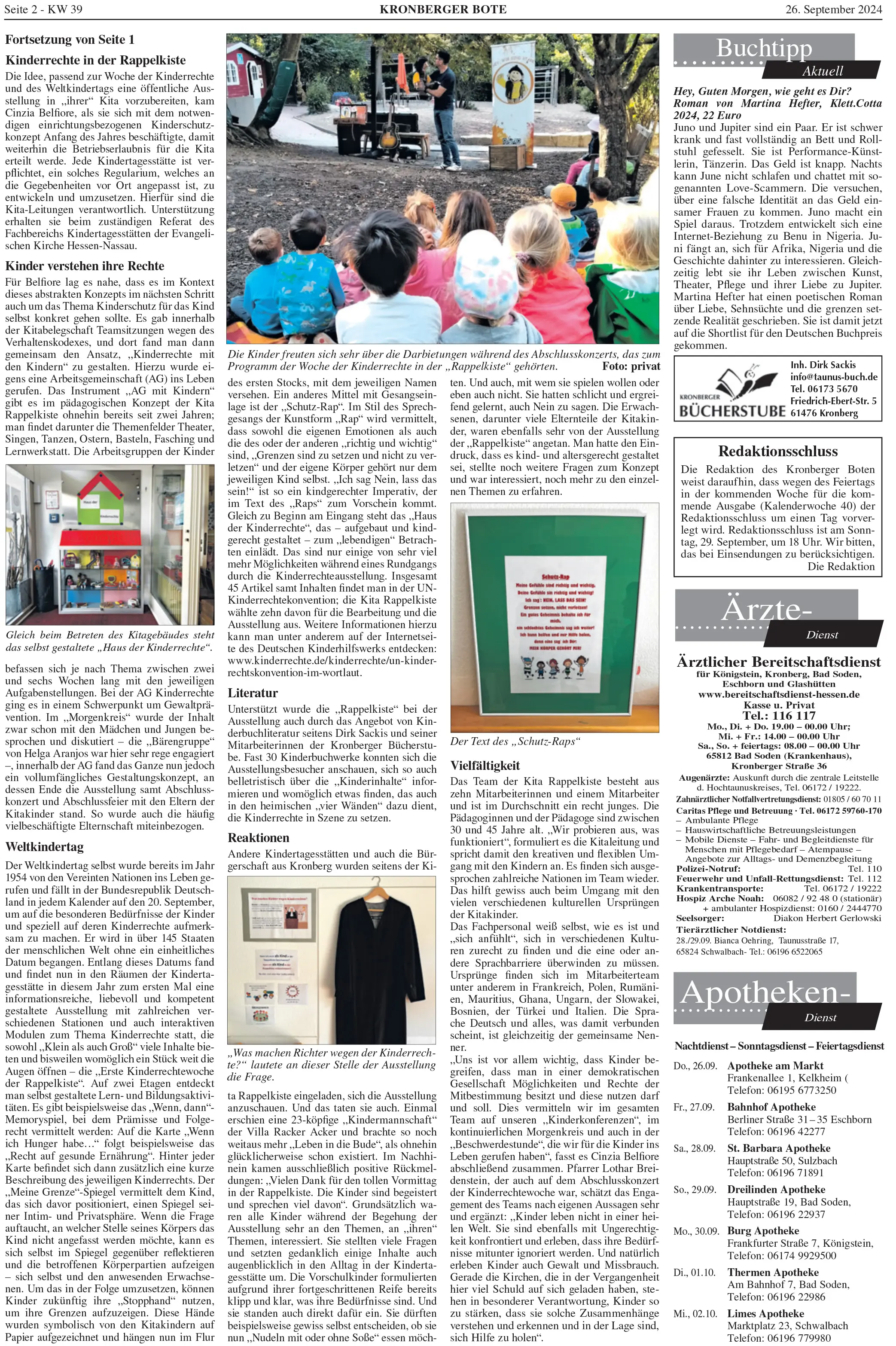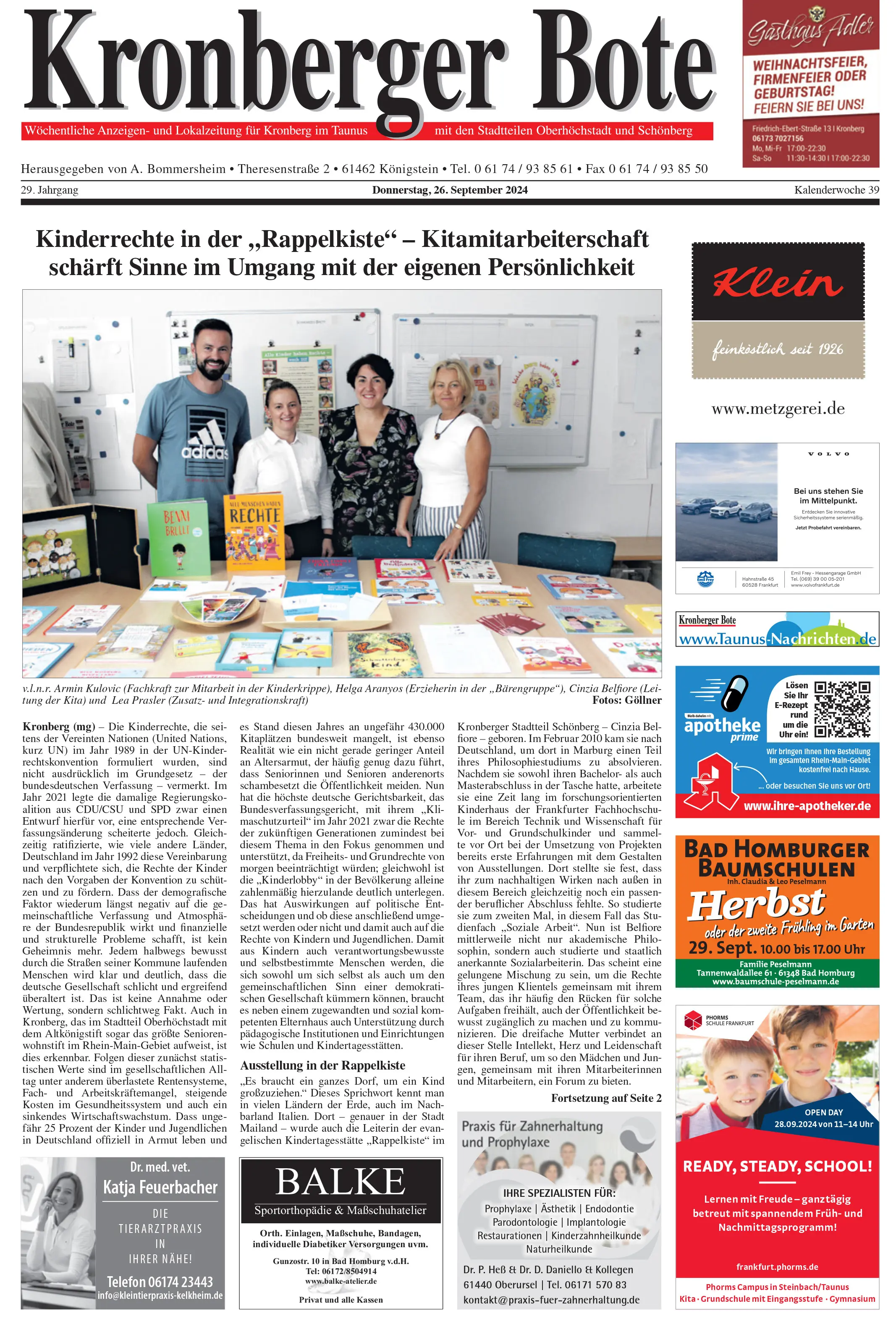 27.09.2024, Kronberger Bote: Kinderrechte in der "Rappelkiste" - Kitamitarbeiterschaft schärft Sinne im Umgang mit der eigenen Persönlichkeit (zum Artikel)